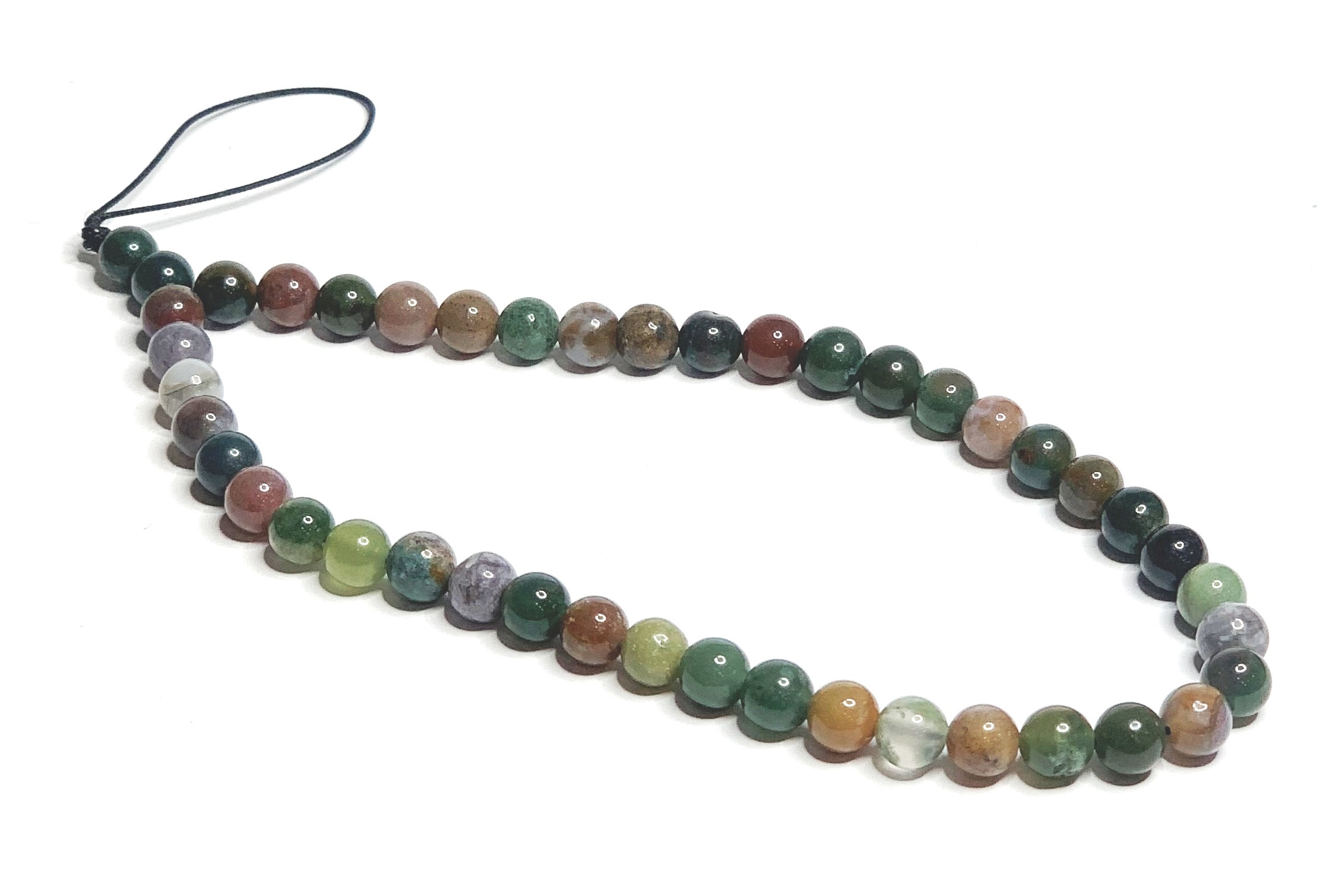 Achát Indický přívěsek na mobilní telefon proti ztrátě, přírodní kámen korálek 6 mm / 26,5 cm, symbolizuje element země