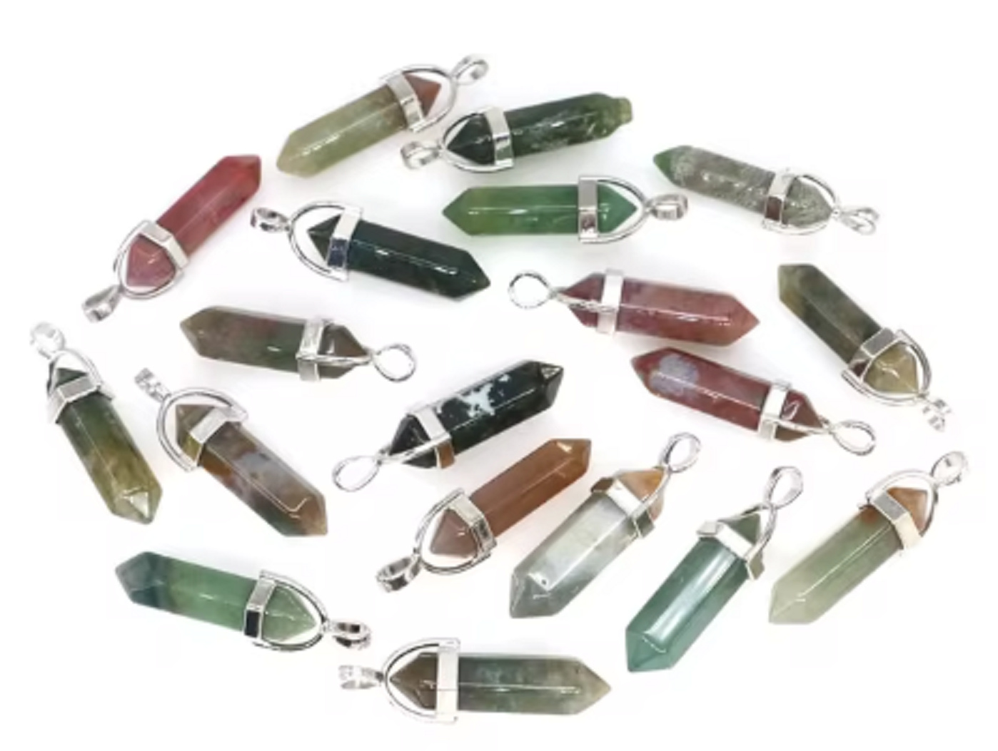 Achát Indický Kyvadlo šestihran přívěsek přírodní kámen 41 x 13 mm, ručně vyřezávaný, 1 kus, dodává odvahu a sílu