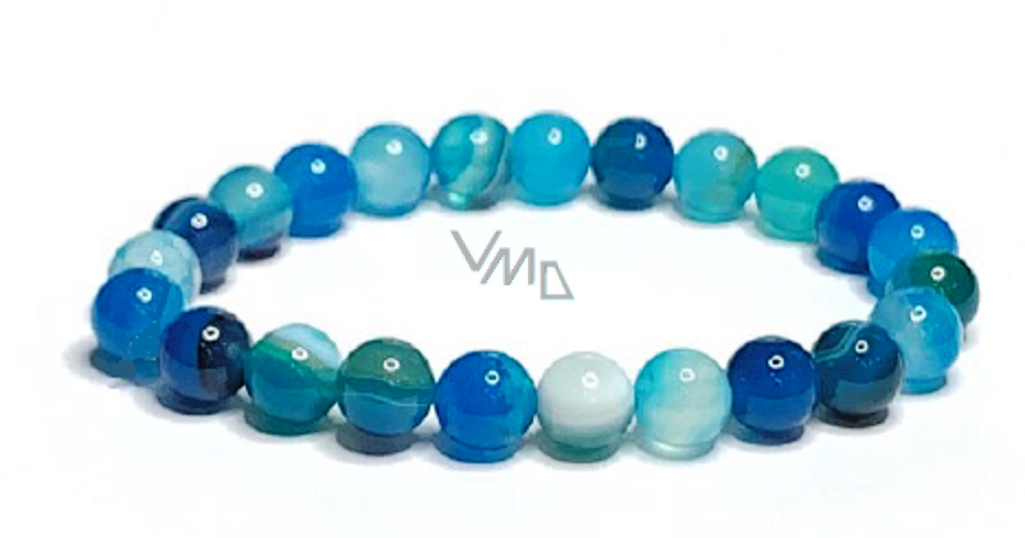 Achát modrý jezerní náramek elastický přírodní kámen, kulička 8 mm / 16 - 17 cm, klid - ochrana - síla - harmonie