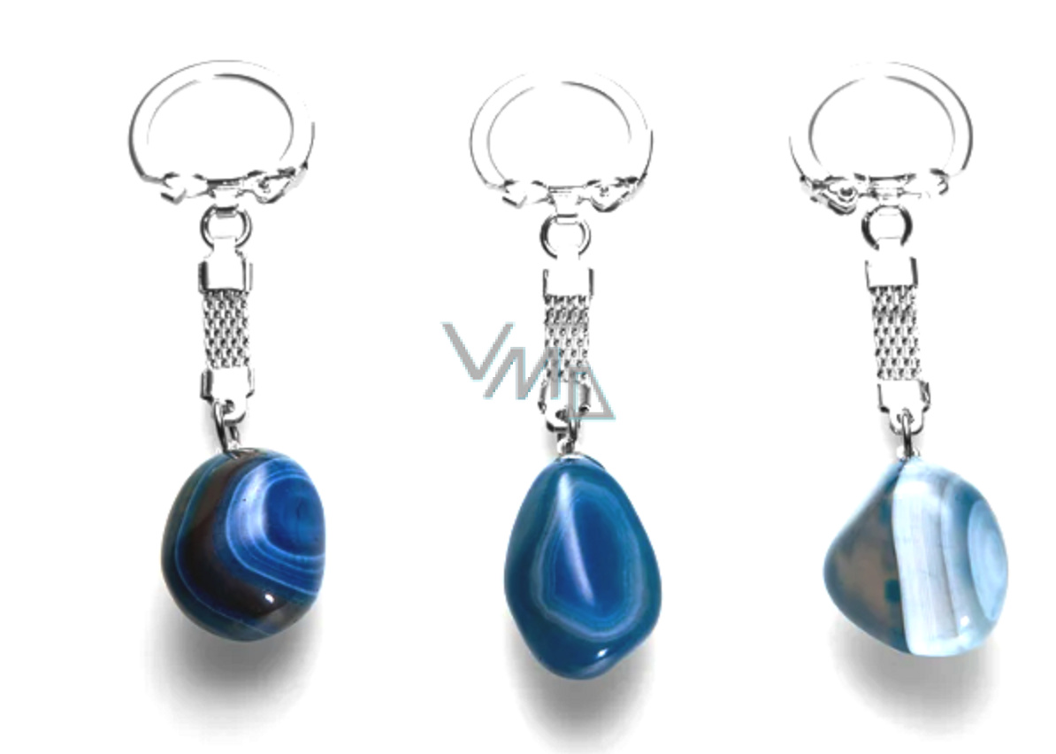 Achát modrý Troml přívěsek klíčenka přírodní kámen, cca 10 cm, 1 kus