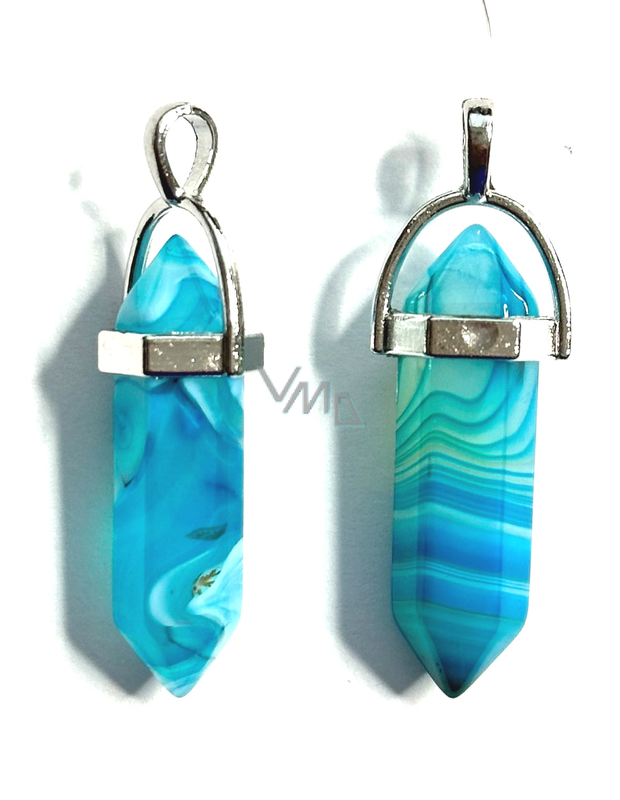 Achát modrý Kyvadlo šestihran přívěsek přírodní kámen 41 x 13 mm, ručně vyřezávaný, kámen stability a podpory