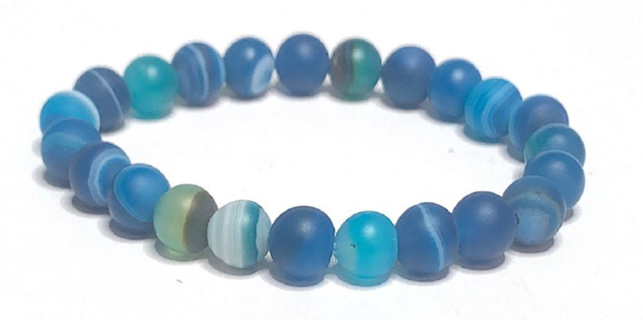 Krásný světle modrý achát bývá kouzelně proužkovaný, nosíval se už za starých časů jako amulet pravdy, který zajišťoval, že z úst vycházejí jen čistá slova. Je uznáván jako nositel míru, spojuje se s utišujícím elementem vody, takže jeho používání vám může pomoci uvolnit se a zbavit stresu.