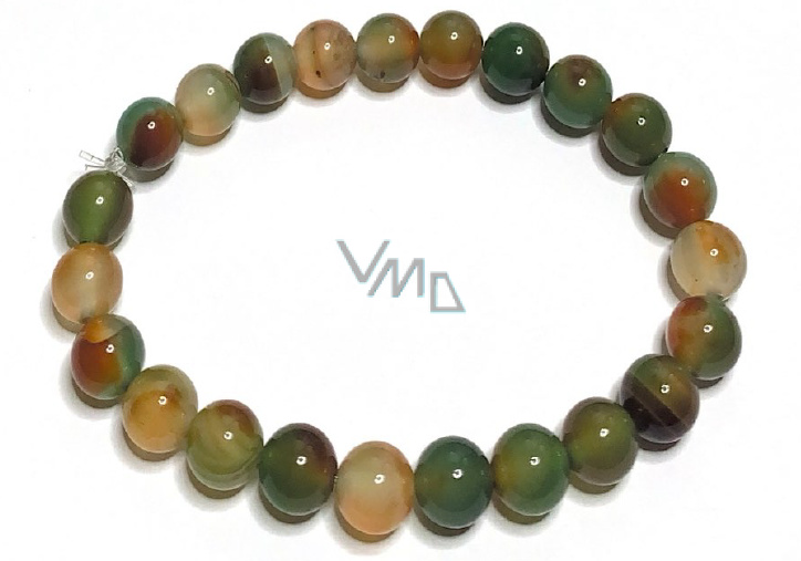 Achát paví náramek elastický přírodní kámen, kulička 8 mm / 16 - 17 cm, klid - ochrana - síla - harmonie