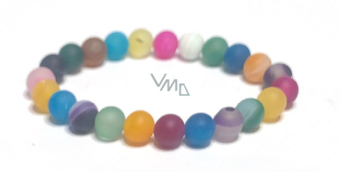Achát pestrobarevný matný čakrový náramek elastický přírodní kámen, kulička 8 mm / 16 - 17 cm, klid - ochrana - síla - harmonie