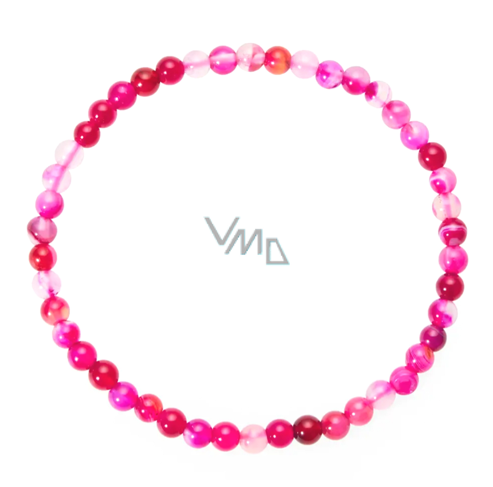 Achát růžový páskovaný náramek elastický přírodní kámen, kulička 4 mm / 19 cm