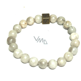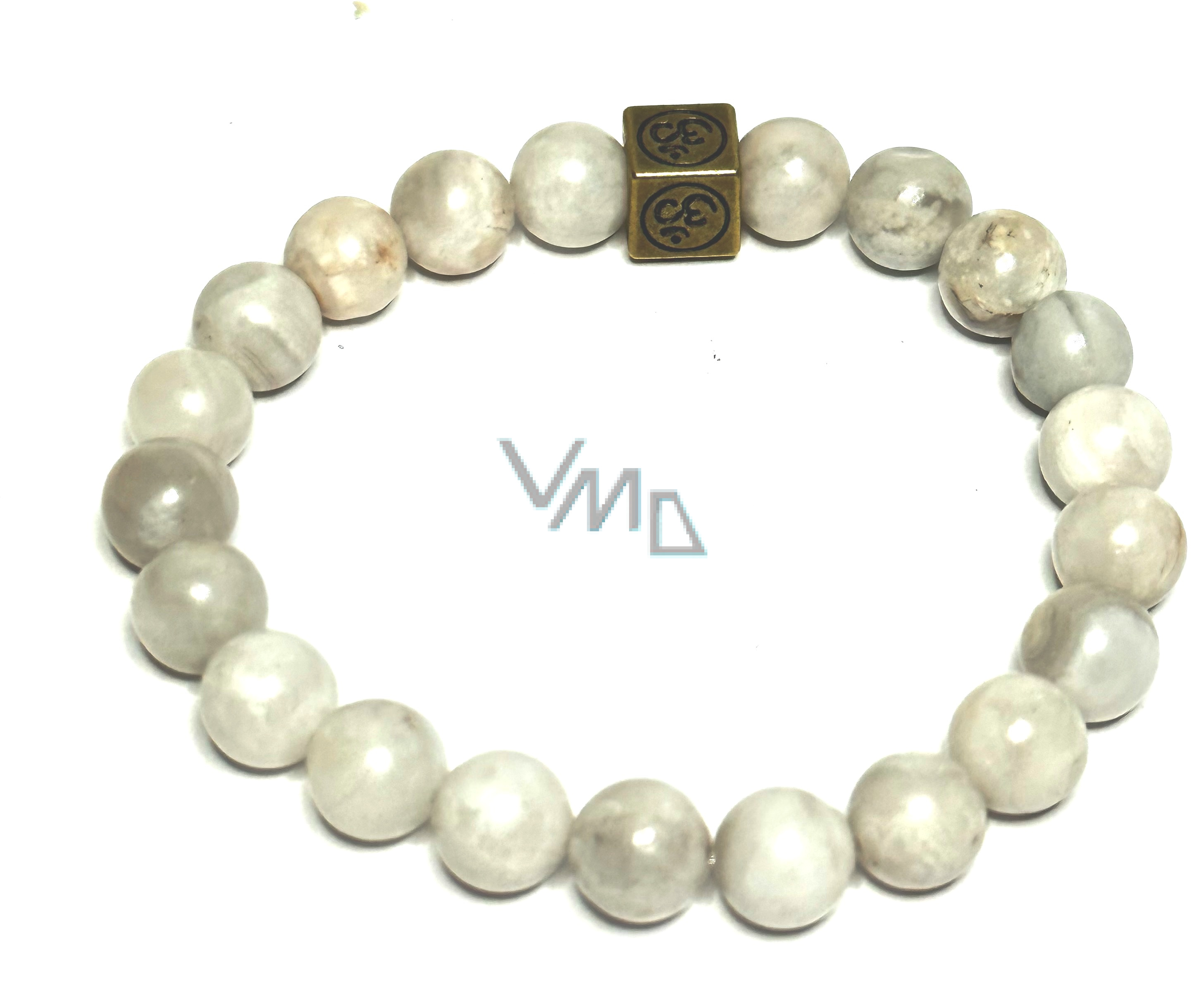 Achát šedý s královskou mantrou Óm náramek elastický přírodní kámen, kulička 8 mm / 16 - 17 cm, poskytuje klid a harmonii