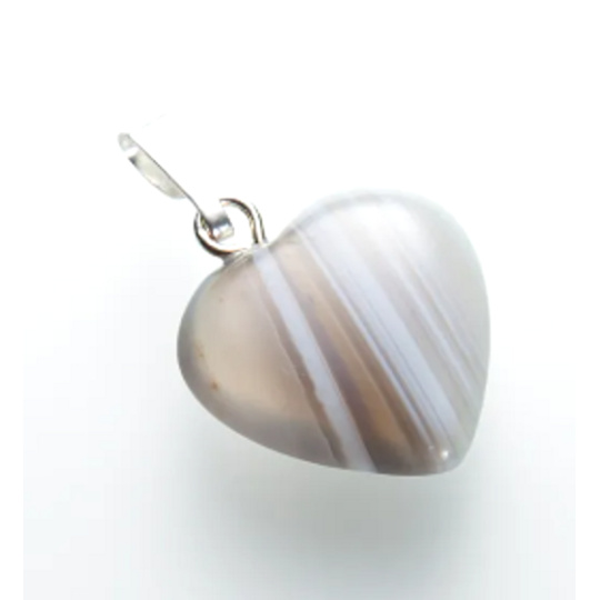 O produktu: Broušené a leštěné kamenné srdíčko pravidelných tvarů o velikosti 15 mm, přívěs ze stříbřeného tombaku.