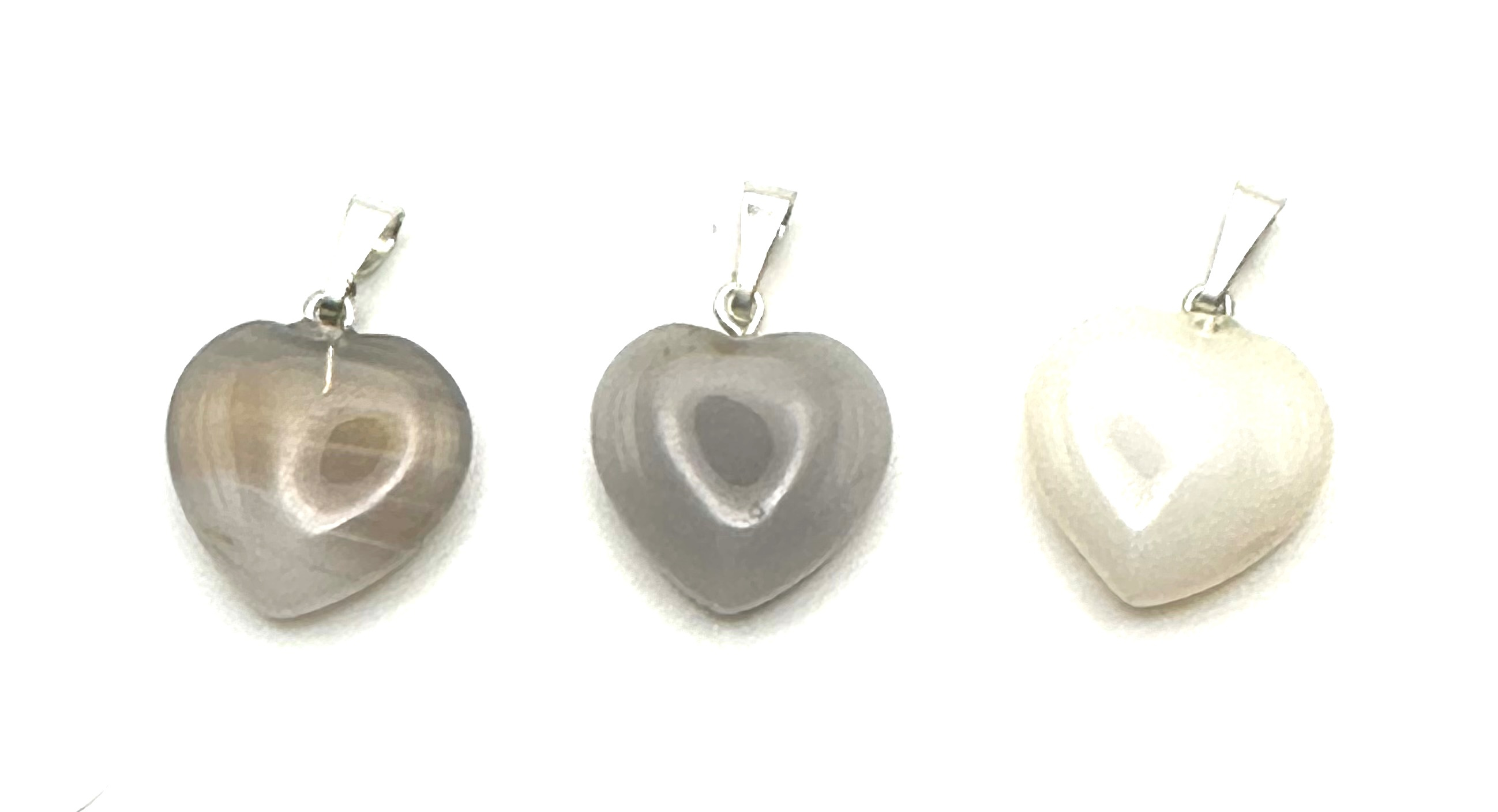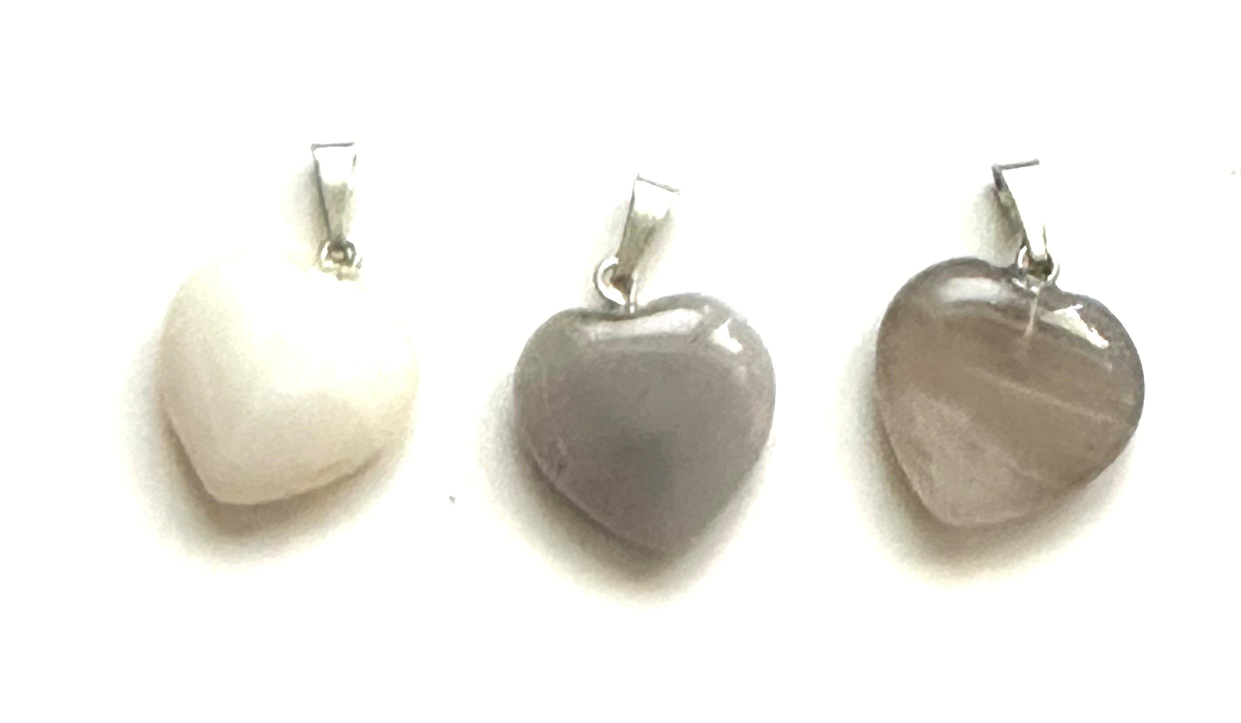 O produktu: Broušené a leštěné kamenné srdíčko pravidelných tvarů o velikosti 15 mm, přívěs ze stříbřeného tombaku.