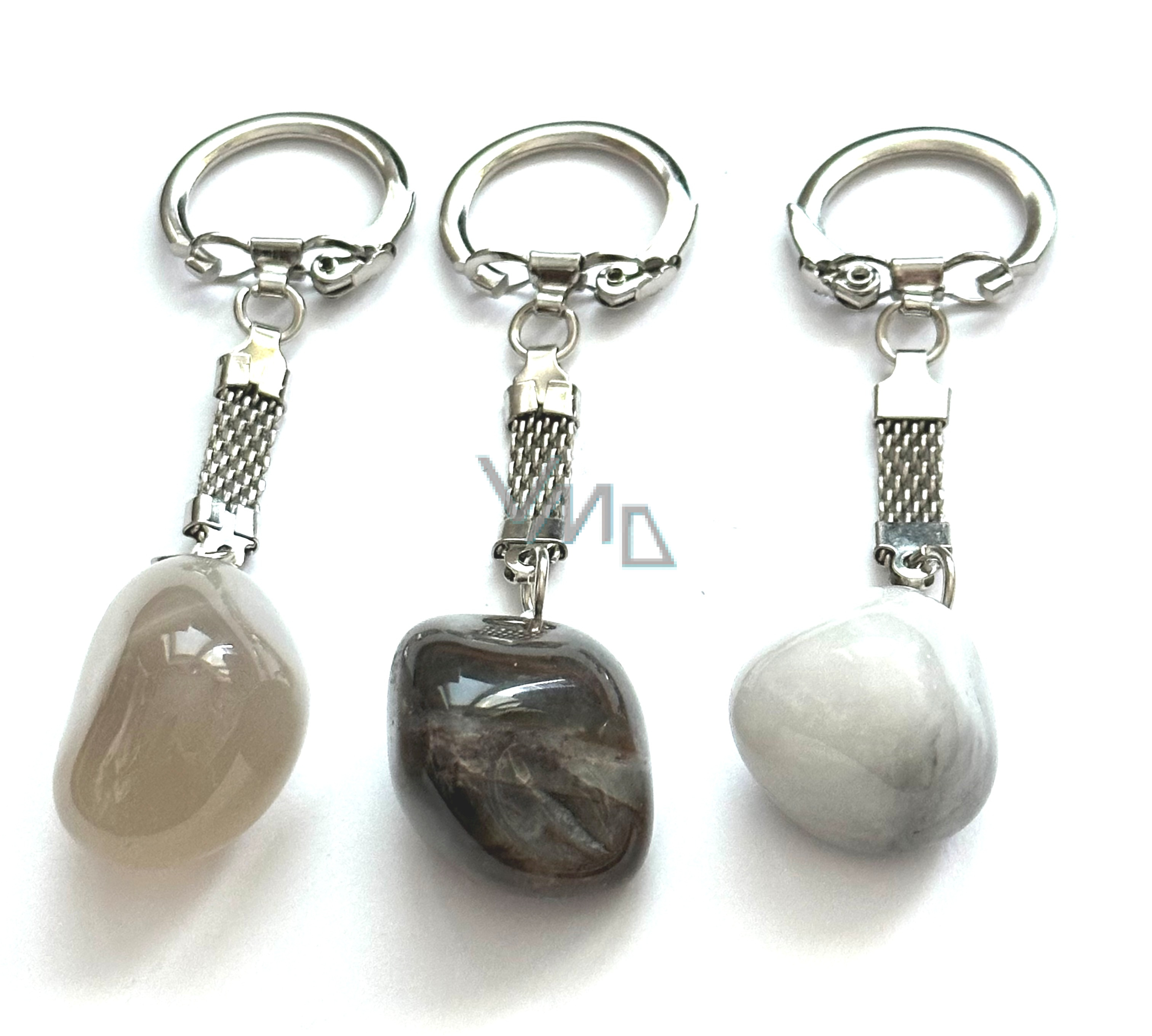 Achát šedý Troml přívěsek klíčenka přírodní kámen, cca 10 cm, 1 kus