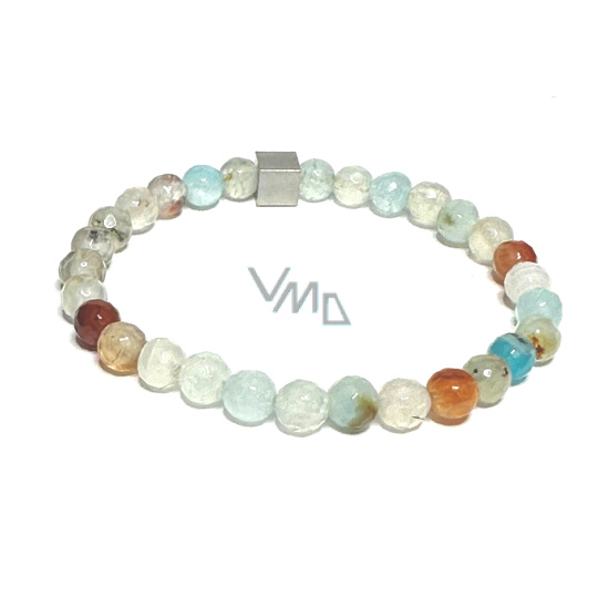 Achát světle modrý fazet náramek elastický přírodní kámen, kulička 6 mm / 16 - 17 cm
