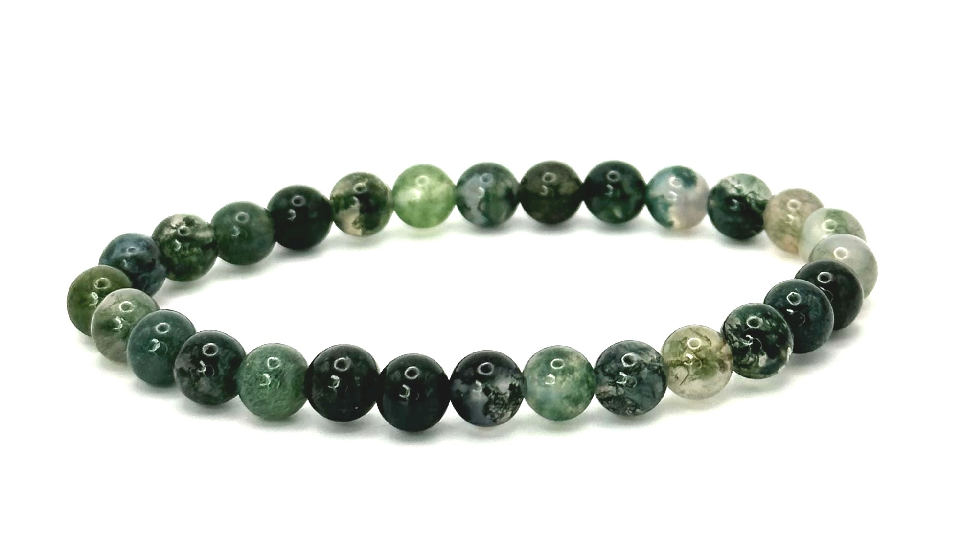 Achát zelený mechový náramek elastický přírodní kámen, kulička 6 mm / 16 - 17 cm, symbolizuje element země