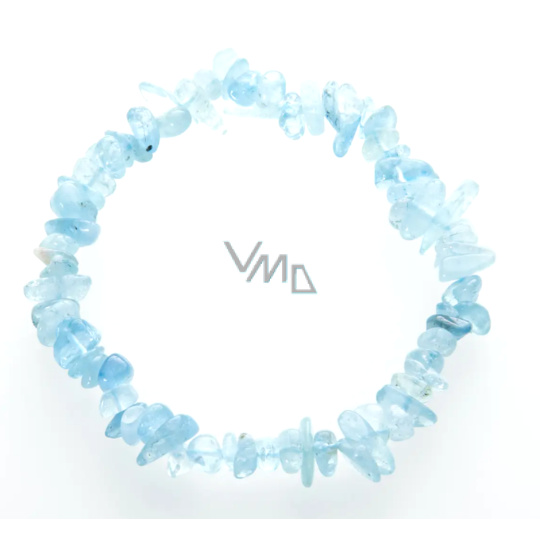 Akvamarín náramek elastický sekaný přírodní kámen 19 cm, symbol spravedlnosti