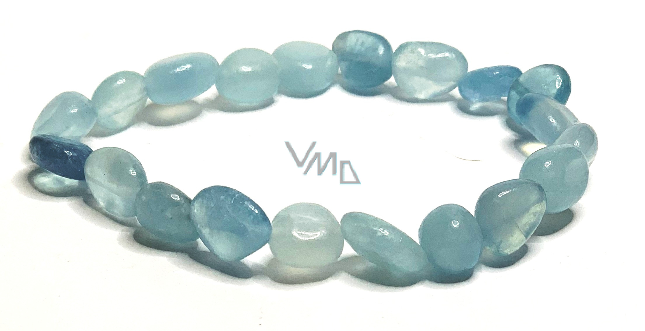 Akvamarin Troml náramek elastický přírodní kámen vyrobený z lesklých a zaoblených kamenů 8 - 12 mm / 16 - 17 cm, kámen námořníků, léčivá síla oceánu