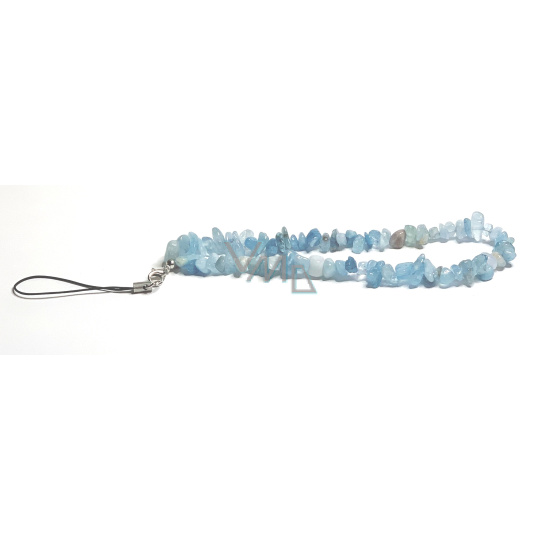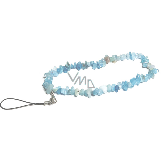 Akvamarin přívěsek na mobilní telefon proti ztrátě, přírodní kámen, obvod 26,5 cm, kámen námořníků, léčivá síla oceánu