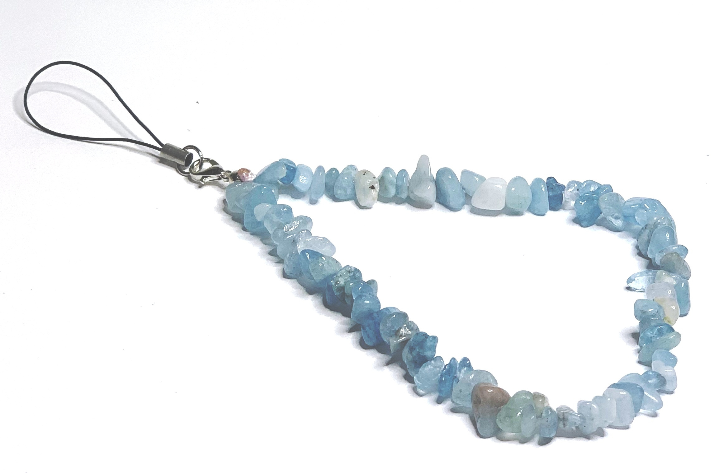 Akvamarin přívěsek na mobilní telefon proti ztrátě, přírodní kámen, obvod 26,5 cm, kámen námořníků, léčivá síla oceánu