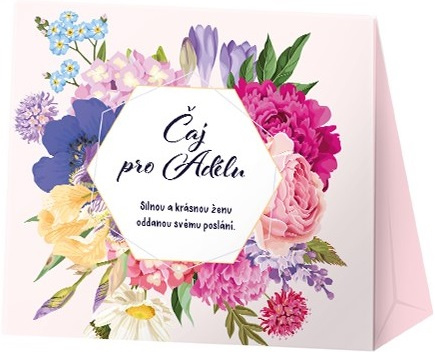 Sypaný ovocný čaj bez ibišku je balen v dárkové květinové krabičce s milým textem. Odpadá vám tak starost s balením dárku.