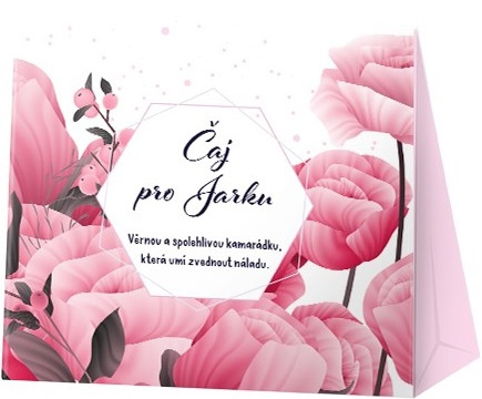 Sypaný ovocný čaj bez ibišku je balen v dárkové květinové krabičce s milým textem. Odpadá vám tak starost s balením dárku.
