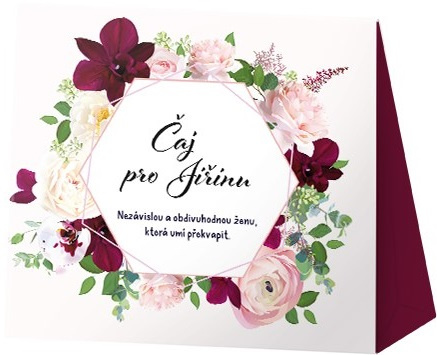Sypaný ovocný čaj bez ibišku je balen v dárkové květinové krabičce s milým textem. Odpadá vám tak starost s balením dárku.