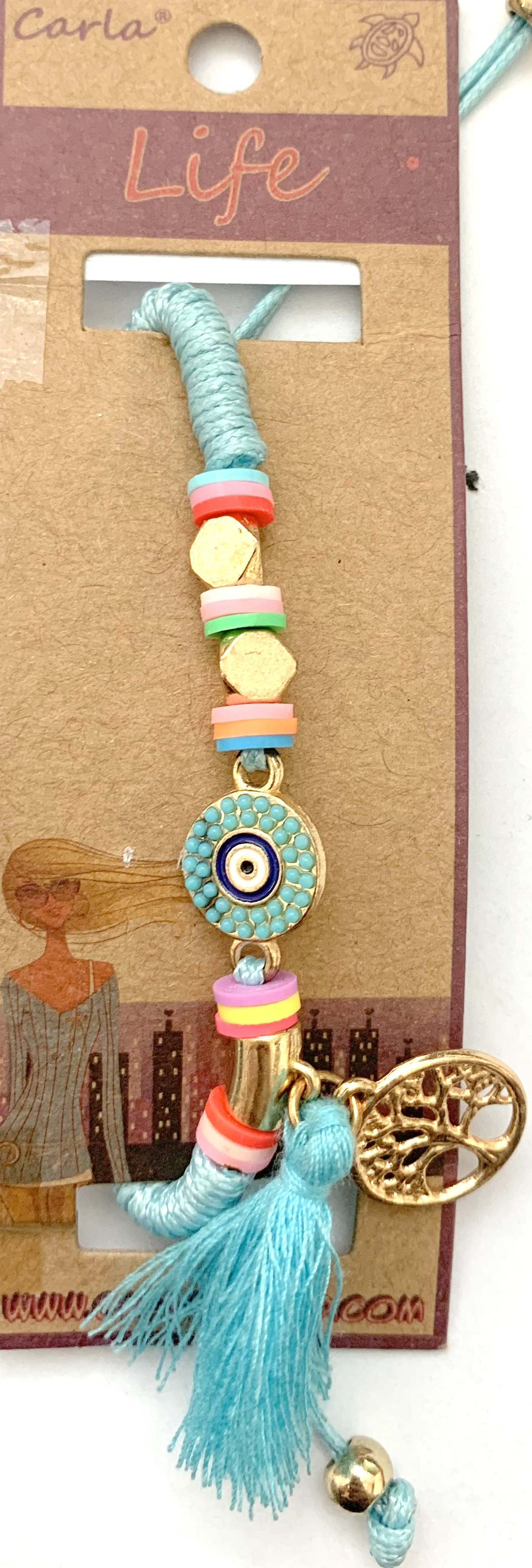 Albi Šperk náramek pletený Modré oko chrání před uhranutím, Střapec ochrana, energie, Hippies symbol míru 1 kus různé barvy