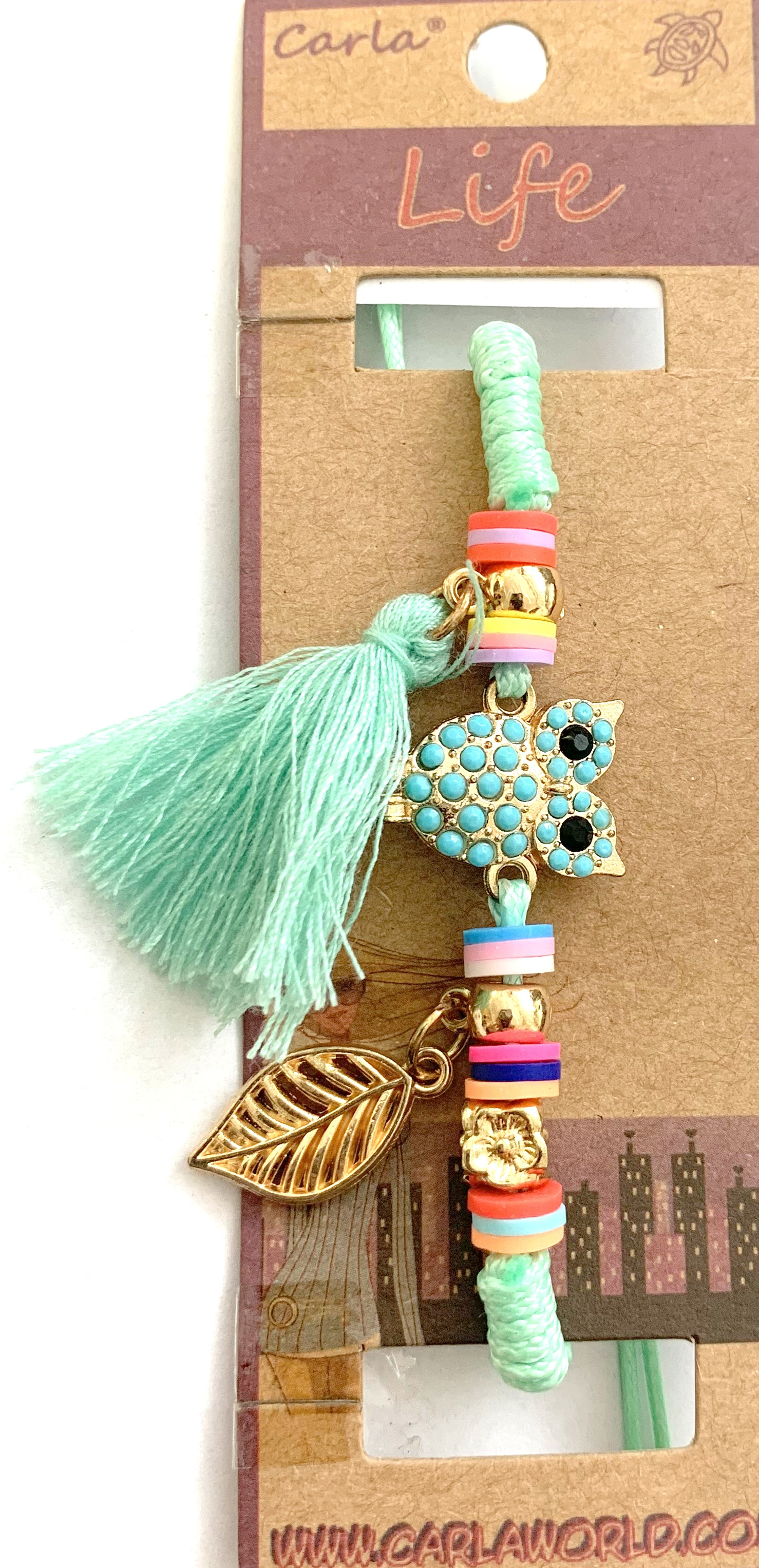 Albi Šperk náramek pletený Sova symbol moudrosti, Střapec ochrana, energie 1 kus různé barvy