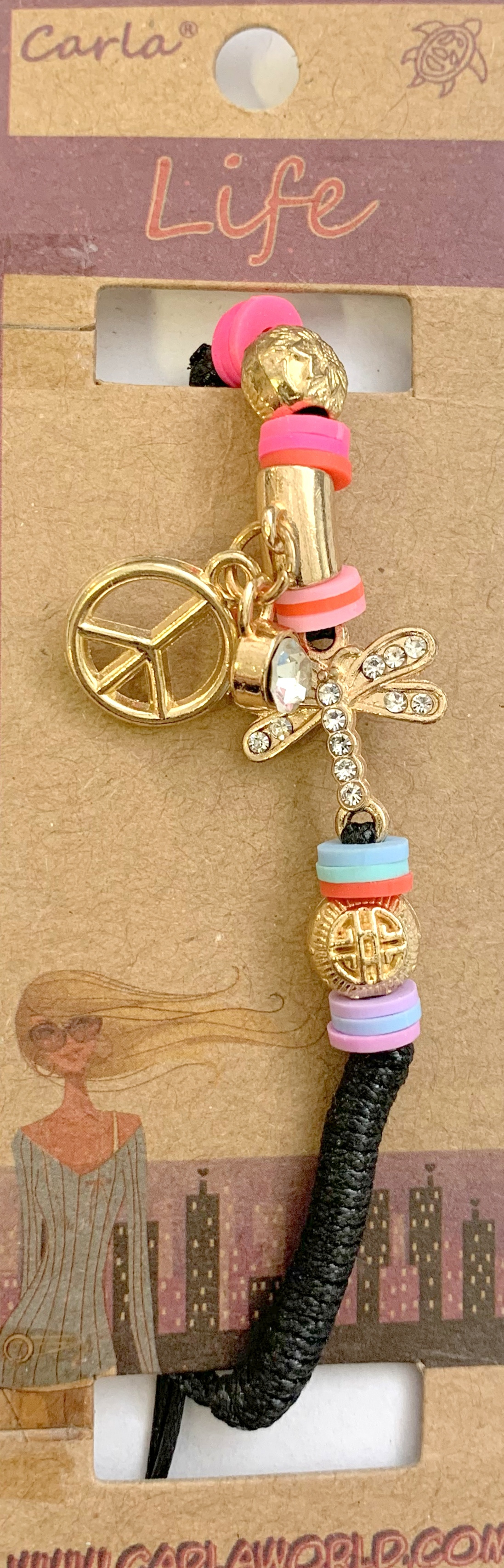 Albi Šperk náramek pletený Vážka černý, Hippies symbol míru 1 kus různé barvy