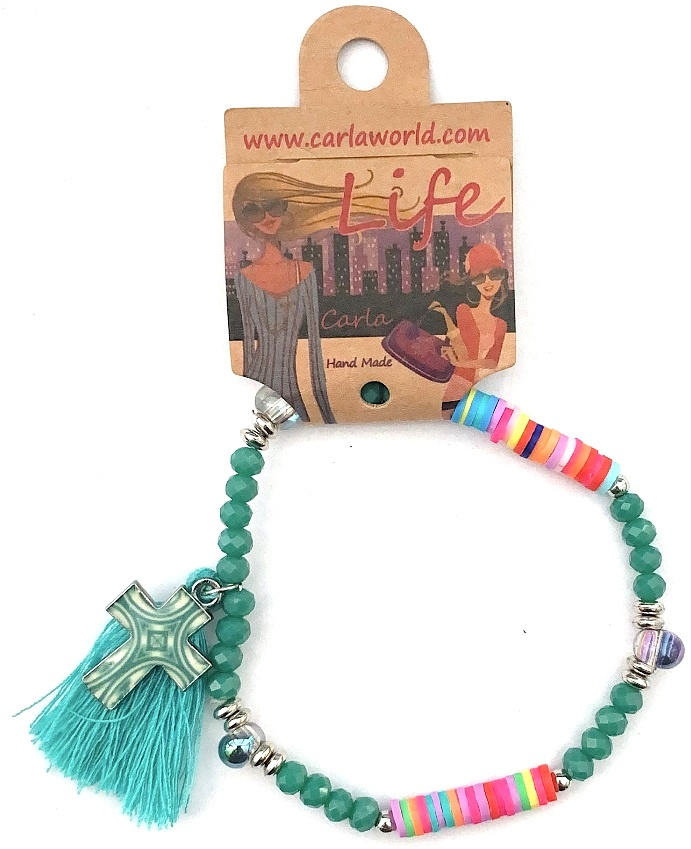 Albi Šperk náramek z korálků Kříž láska, víra, naděje, Střapec ochrana, energie 1 kus různé barvy