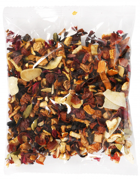 Jablka, Ibišek, Šípek, Pomerančová kůra, rozinky (rozinky, Slunečnicový olej), datle (datle, rýžová mouka), Meruňky (Meruňky, rýžová mouka, oxid siřičitý), Švestky (Švestky, Slunečnicový olej), poupata růží, Fíky (Fíky, rýžová mouka), kokos, Lékořice, kardamom, aroma, Mandle, růže, vanilka.