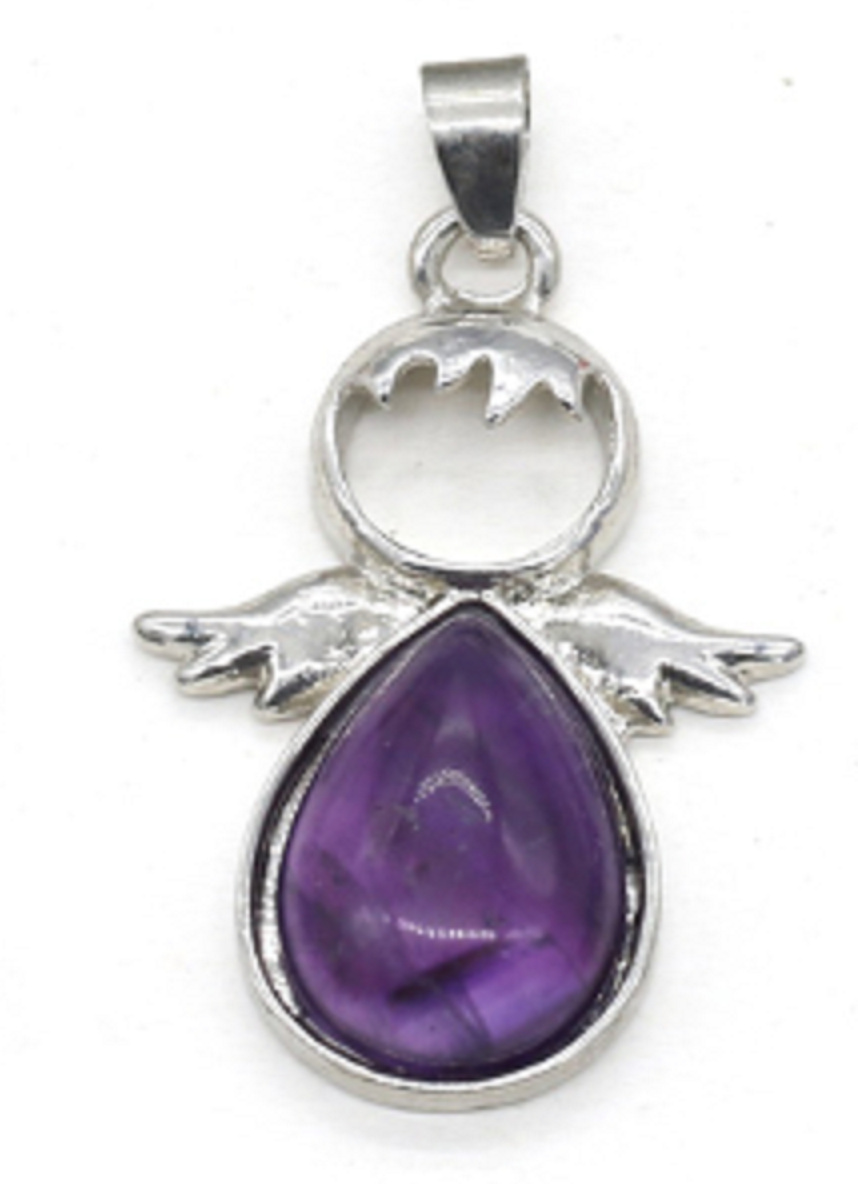 Atraktivní přívěsek ve tvaru Anděla s přírodním kamenem Ametyst.