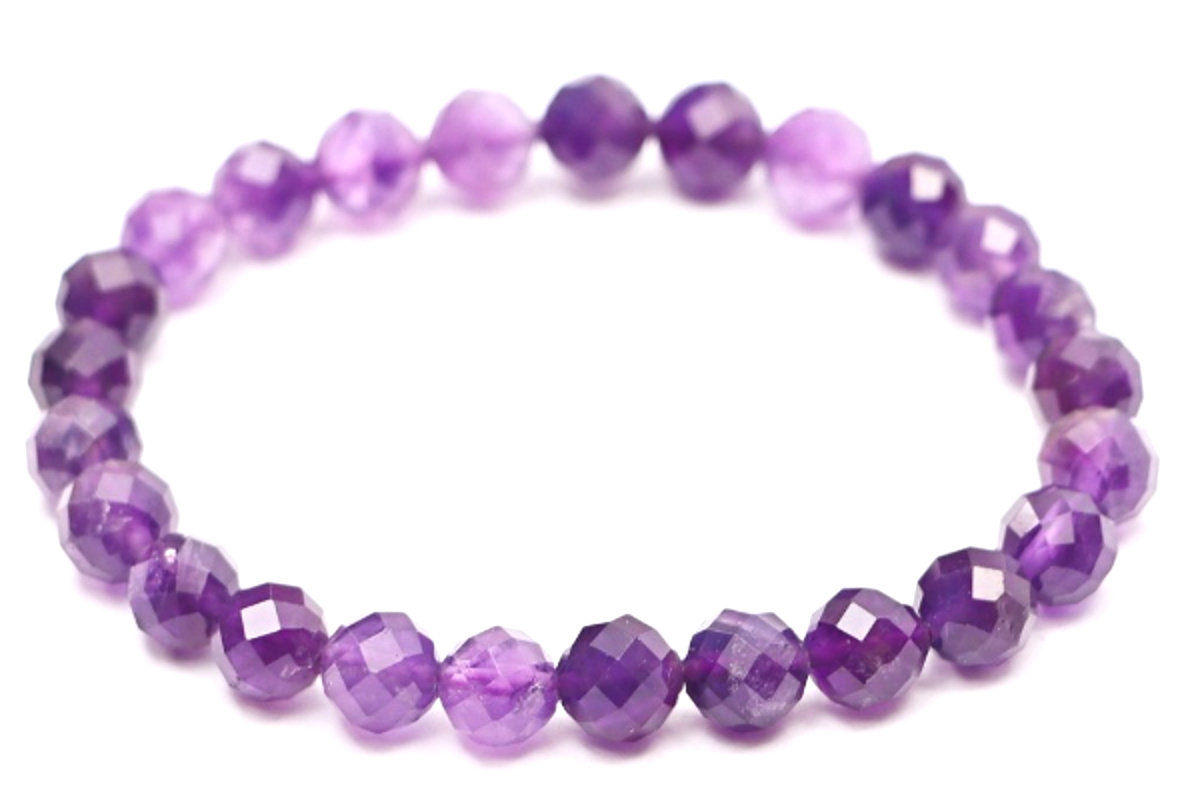 Ametyst fazet náramek elastický přírodní kámen, kulička 6 mm / 16 cm, pro děti, kámen králů a biskupů