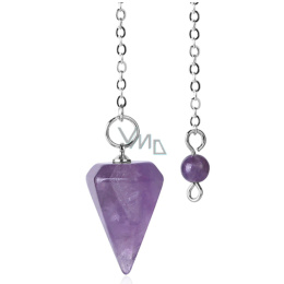 Ametyst fialový kyvadlo přírodní kámen 2,5 cm + 18 cm řetízek s korálkou, kámen králů a biskupů