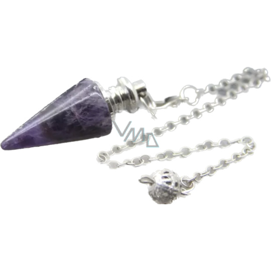 Ametyst fialový kyvadlo přírodní kámen 3,5 cm + řetízek s kuličkou 18 cm, kámen králů a biskupů
