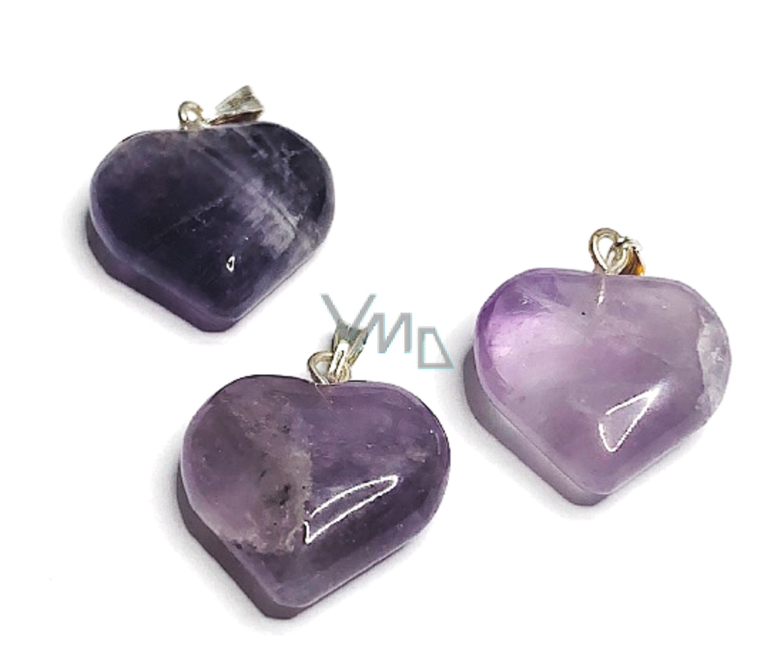 Ametyst Srdce přívěsek přírodní kámen 20 mm 1 kus, kámen králů a biskupů