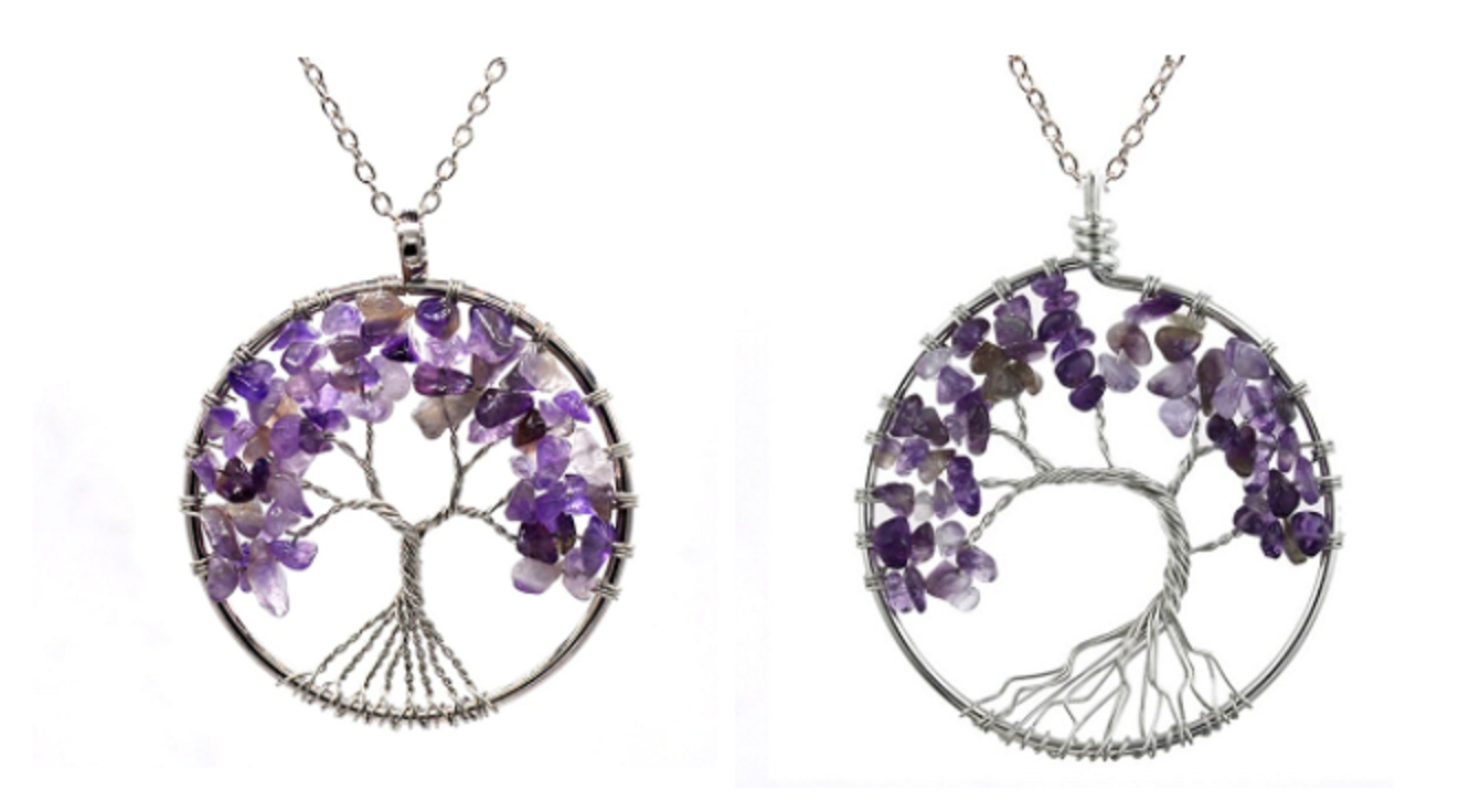 Ametyst Strom života přívěsek přírodní kámen, léčivý, délka řetízku: 45 + 5 cm, kámen králů a biskupů