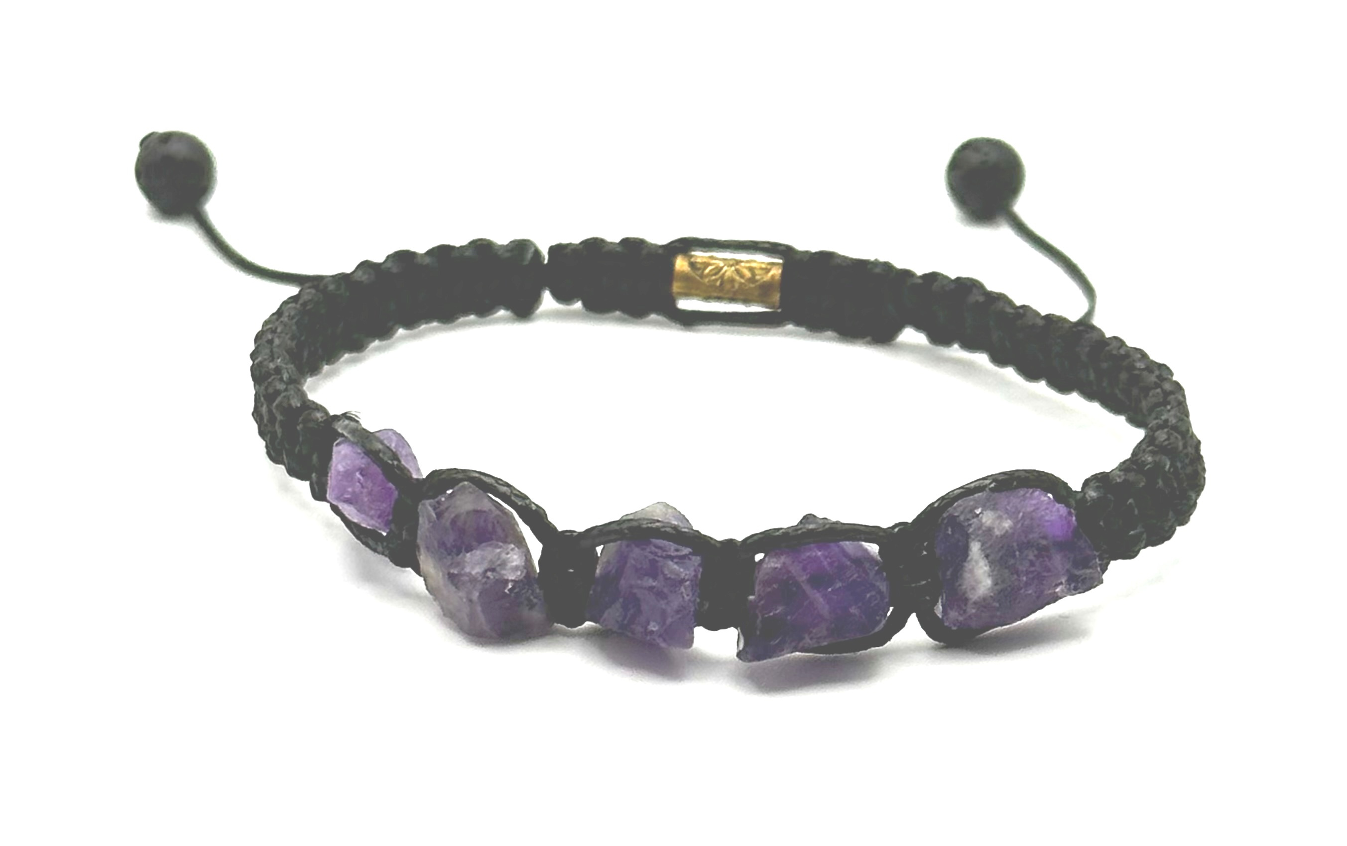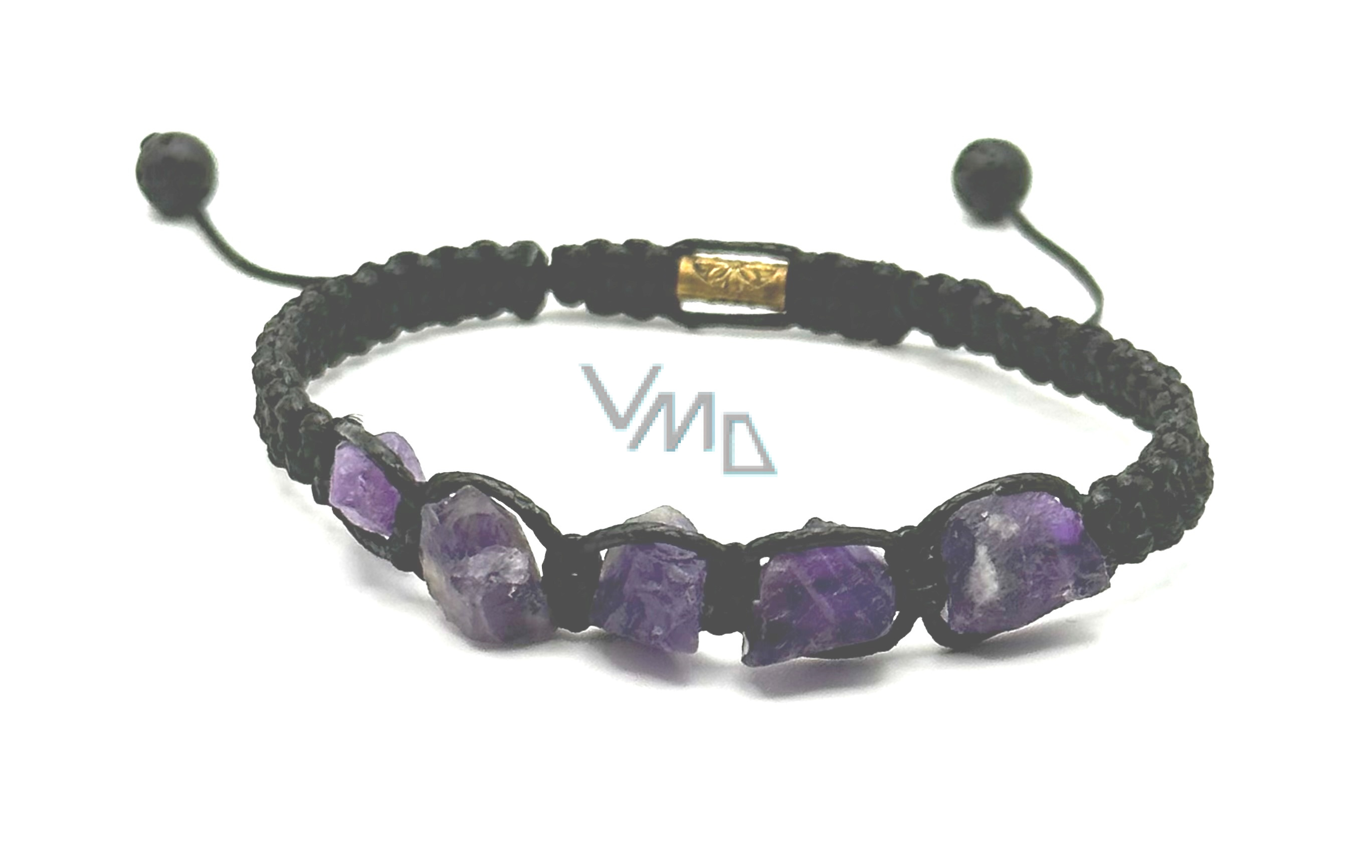 Ametyst surový náramek přírodní kámen, ručně pletený, nastavitelná velikost, kámen králů a biskupů
