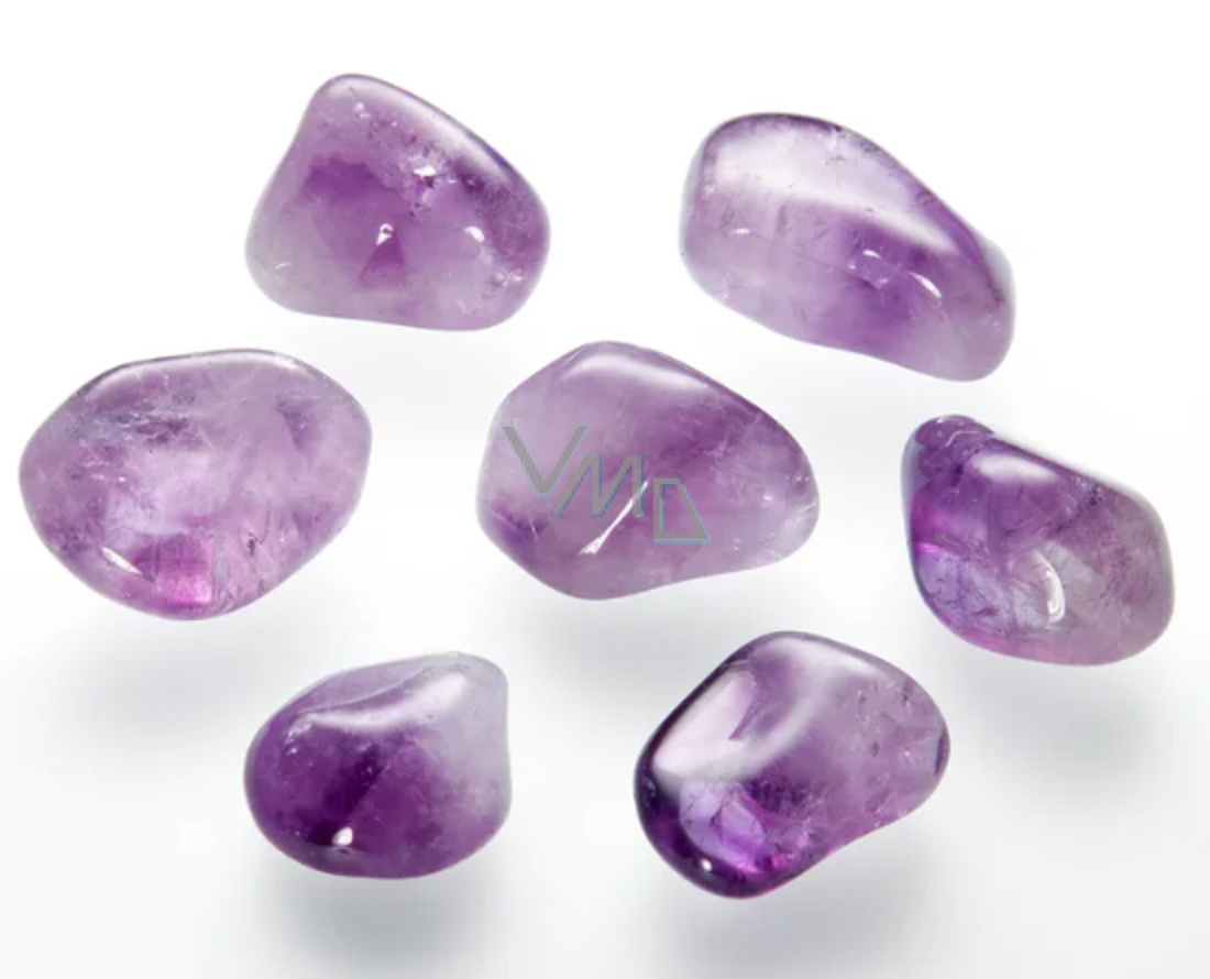 Ametyst je očišťující a ochraňující krystal. Jeho purpurová barva se spojuje s duchovností a přináší vnitřní vidění a psychické uvědomění. Je znám jako léčivý kámen a před mnoha lety se jím často roztíraly sliny po obličeji, aby léčil vřídky a potíže s pletí. Věřilo se také, že výborně ulevuje od bolesti, jeho uklidňující vibrace můžete použít při svíravých bolestech hlavy, kdy se vám doslova sevřou svaly a krevní řeč po celé hlavě a krku, čímž vzniká právě tato bolest.