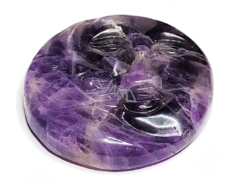 Ametyst tvář slunce a měsíc. ručně vyřezávaný přírodní kámen 5 cm, kámen králů a biskupů