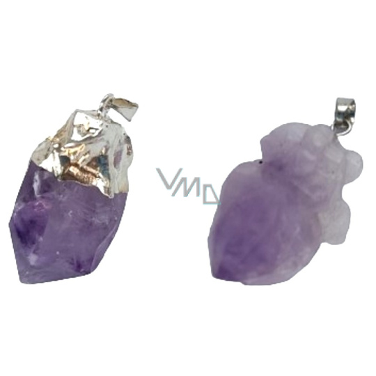 Ametyst v kovu přívěsek přírodní kámen cca 2,5 - 3 cm, kámen králů a biskupů 1 kus