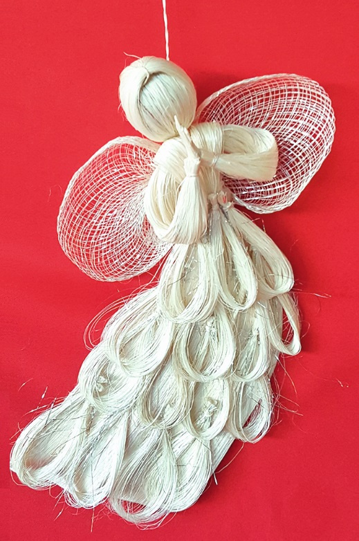 Anděl abaca letící plochý s obloučky stříbrný 31 cm