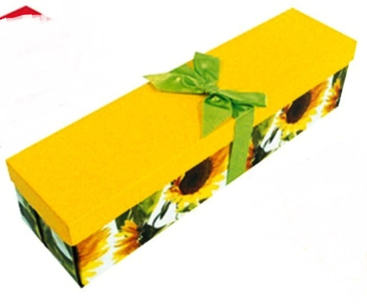 Dárková krabička skládací s mašlí na láhev Slunečnice 34 x 9,5 x 9,5 cm 1 kus