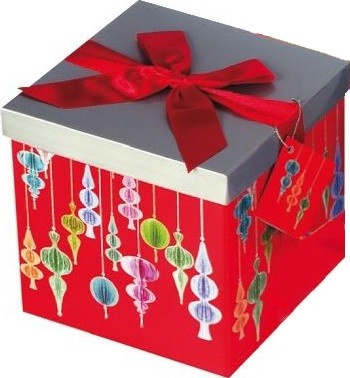 Anděl Dárková krabička skládací s mašlí vánoční červená s červenou mašlí 17 x 17 x 17 cm 1 kus