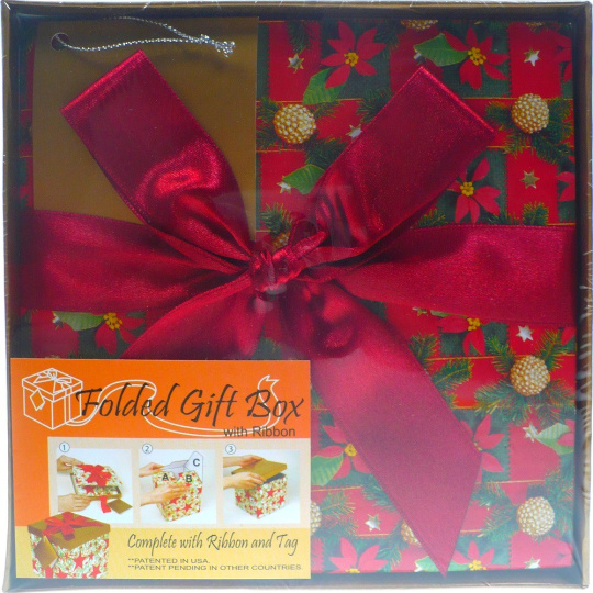 Anděl Dárková krabička skládací s mašlí vánoční červená s vínovou mašlí 1372 M 15 x 15 x 15 cm 1 kus