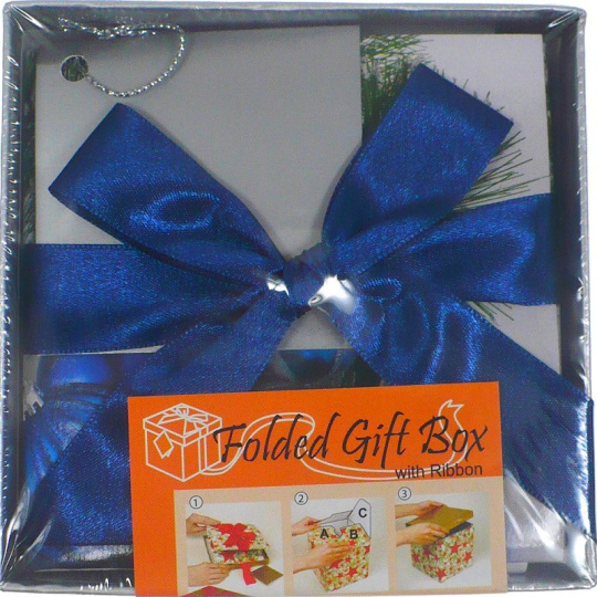 Anděl Dárková krabička skládací s mašlí vánoční stříbrná s modrou mašlí 1370 XS 10 x 10 x 10 cm 1 kus