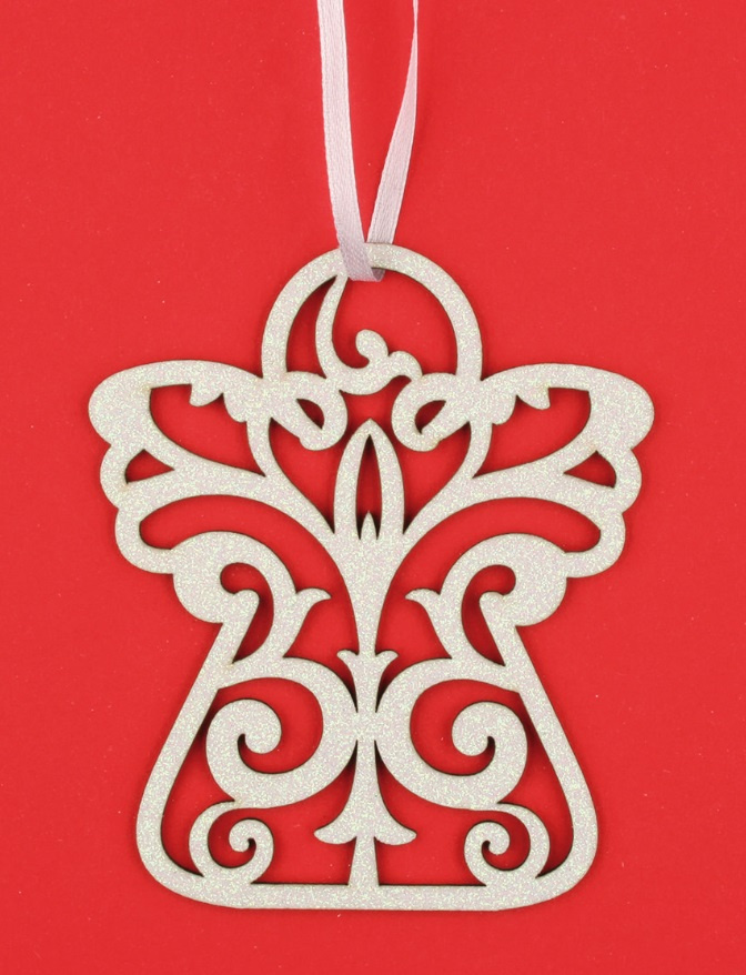 Anděl dřevěný bílý, glitr na zavěšení 10 cm