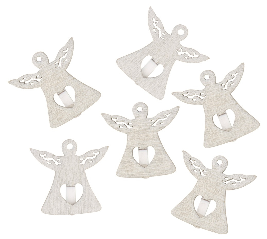 Anděl dřevěný na kolíčku bílý 3 cm 6 kusů