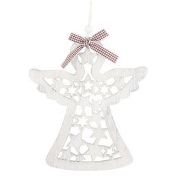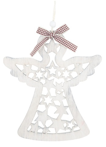 Anděl dřevěný na zavěšení světle šedý 14 x 16 cm