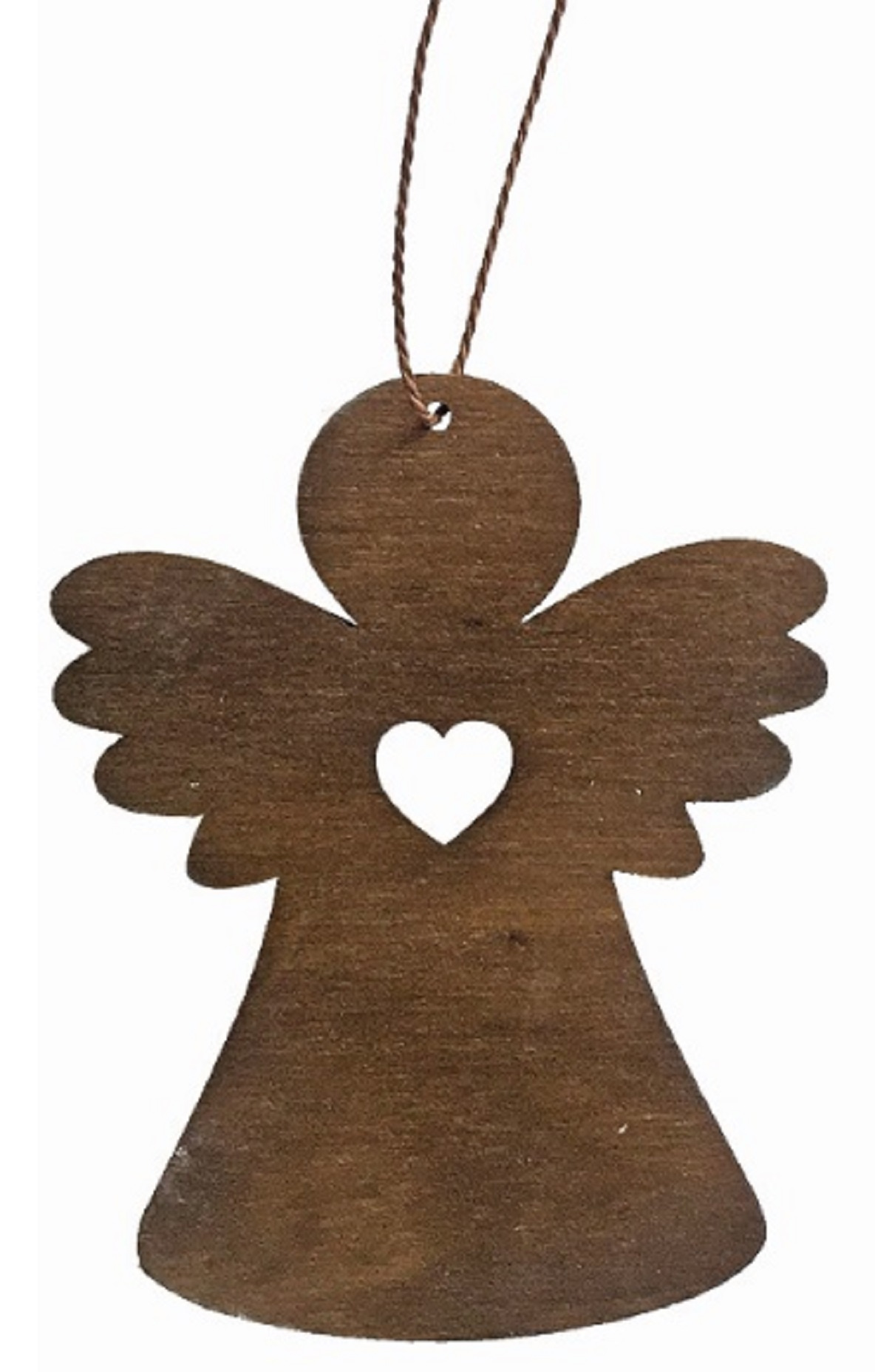Anděl dřevěný tmavě hnědý na zavěšení 8 cm