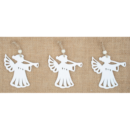 Anděl dřevěný závěsný bílý 7 cm 3 kusy