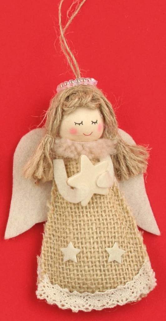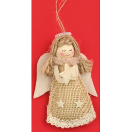 Anděl jutový hvězda v ruce na zavěšení 10 cm
