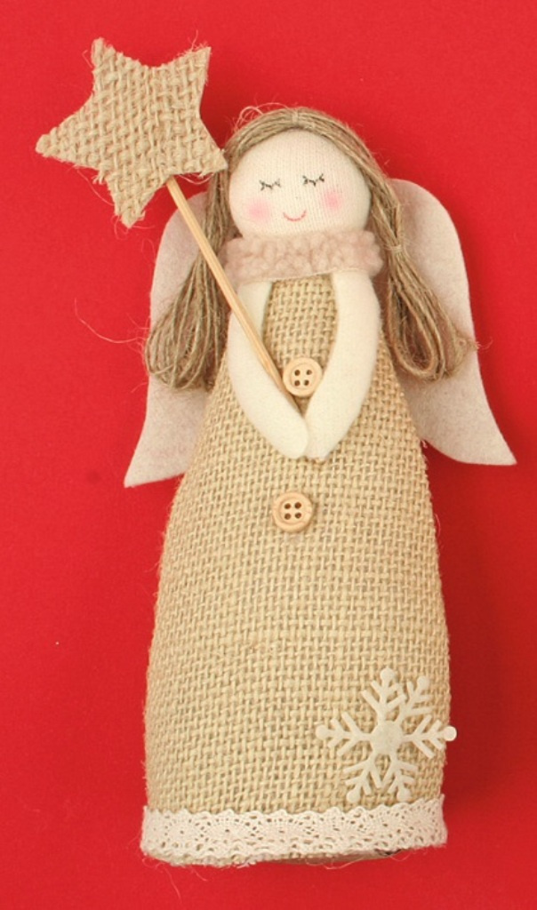 Anděl jutový na postavení hvězdička 18 cm
