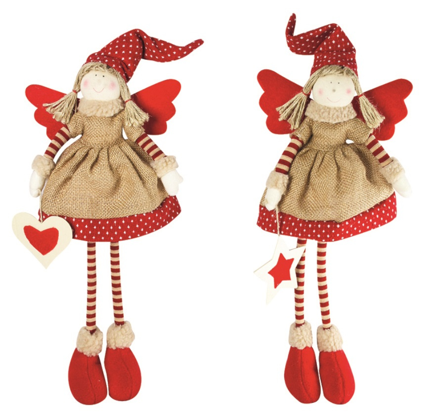 Anděl jutový na postavení s pruhovanýma nohama 34 cm 1 kus